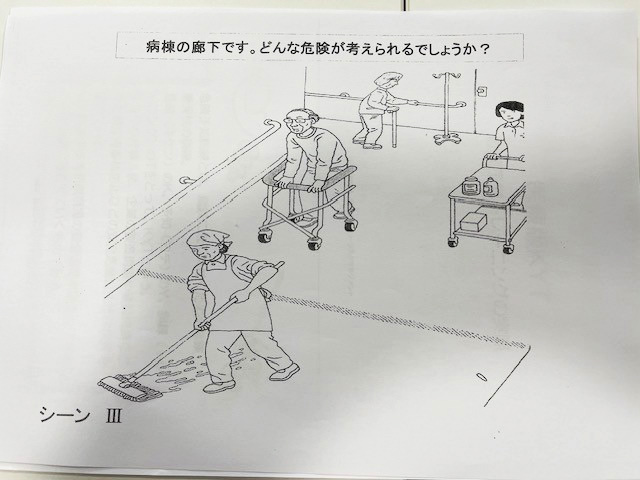 まず、医療現場において想定される危険を、イラストを用いて意見交換を行いました💁♀️