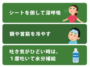 移動中に乗り物酔いが起こった場合、車外に出て休息をとりましょう😮💨