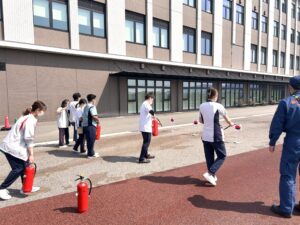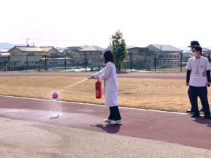 総社消防署の方にお越しいただき、講話と初期消火訓練を行いました。